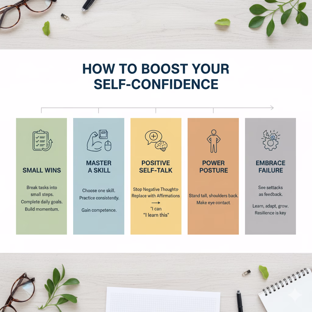Mengenali hal-hal di atas membantu kita menyadari bahwa rasa percaya diri bisa dilatih, bukan sesuatu yang muncul begitu saja.
